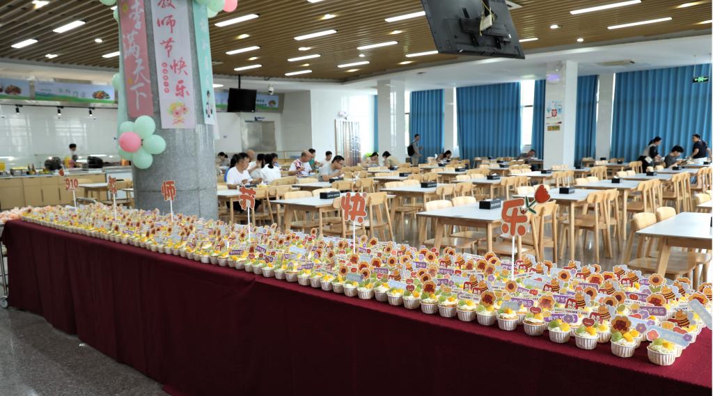 “平时上课、科研、处理行政事务非常忙碌,有时甚至顾不上好好吃饭。细节见真情。食堂的用心让我们感受到了学校尊师重教的优良传统和人文关怀。这不仅仅是一顿饭,更是学校对我们辛勤工作的认可和尊重,归属感和幸福感油然而生。”一位教师一边品尝蛋糕一边高兴地表示。